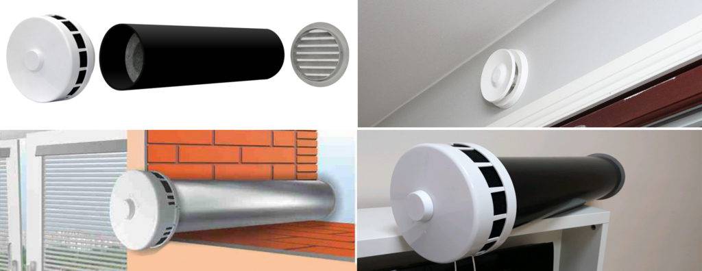 В высокопроизводительных модификациях клапанов приточного типа наружный воздухозаборник связан с внутренним регулировочным механизмом телескопической камерой. Элемент клапана, устанавливаемый внутри помещения, имеет фильтр, выпускные форсунки, лабиринтную систему проток.