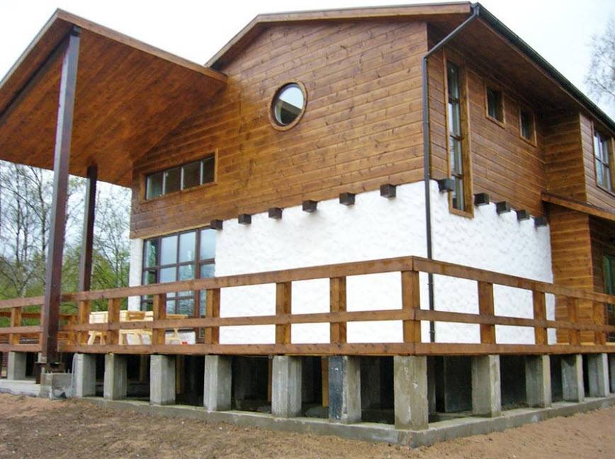 Хороший вариант для создания теплового барьера по периметру здания — изготовления цоколя