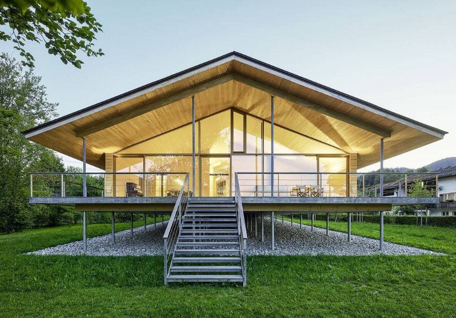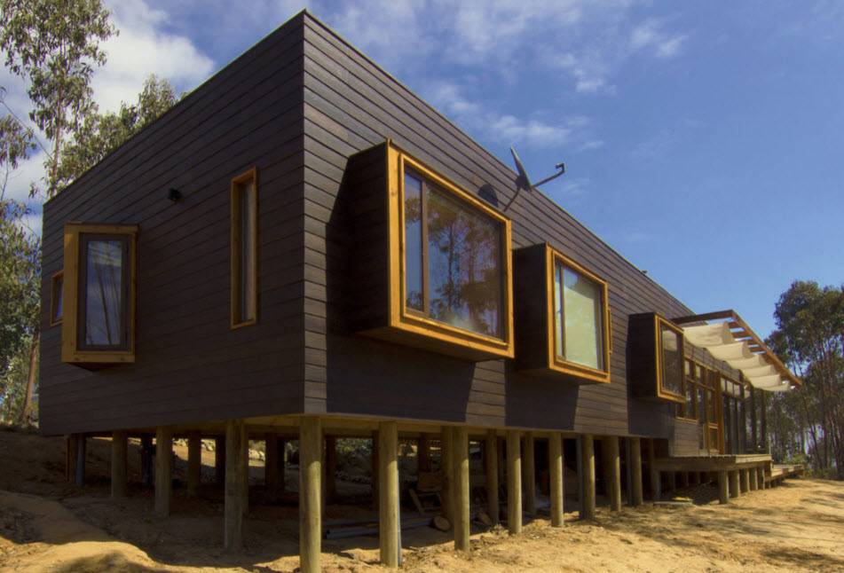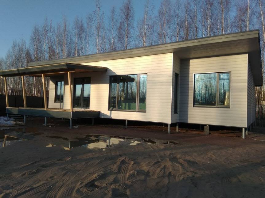 Ключевым элементом жилья является фундамент, который должен справляться с возлагаемой на него нагрузкой. При свайно-винтовом фундаменте каждую сваю можно вкручивать на разную глубину, зависящую от типа почвы в каждой точке земельного участка. Возводить дом можно даже на склоне, главное придерживаться разработанного проекта.