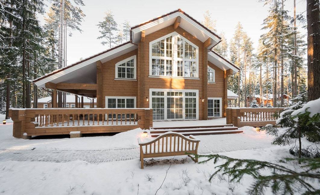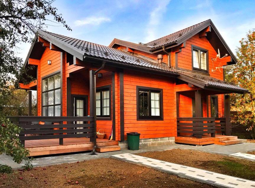 Для строительства используется бесстыковочная технология укладки бруса, когда роль ростверка выполняет нижний обвязочный венец. Он надежно скрепляет винтовые сваи, делая необязательной обвязку свайных элементов швеллером/брусом. Таким образом, достигается дополнительная прочность конструкции без ее удорожания.