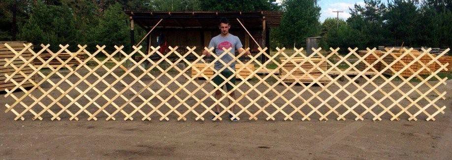 Для изготовления основы из рамы используются бруски шириной 2,5 – 3,0 см. Затем внутри набиваются рейки. Тут можно использовать материалы из хвойных пород толщиной не менее 1,5 см. Вариантов соединения их между собой весьма много, но чаще это образование квадратов, ромбов, треугольников, арок. Крепятся рейки при помощи гвоздей или саморезов.