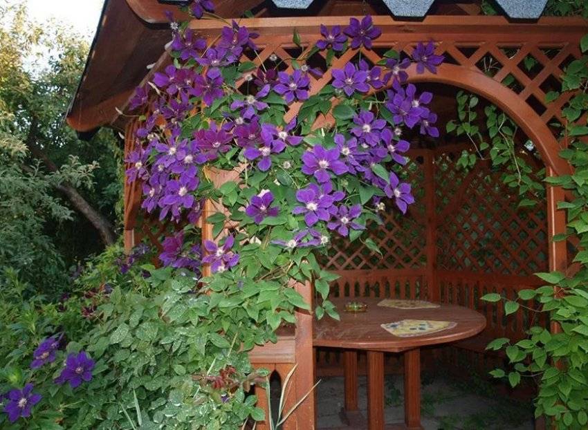 Важно! Вид растения выбирают, исходя из климата местности, где установлена беседка, его особенностей выращивания и способности разрастаться. Иногда главной целью их высаживания является не декор, а получение густой тени