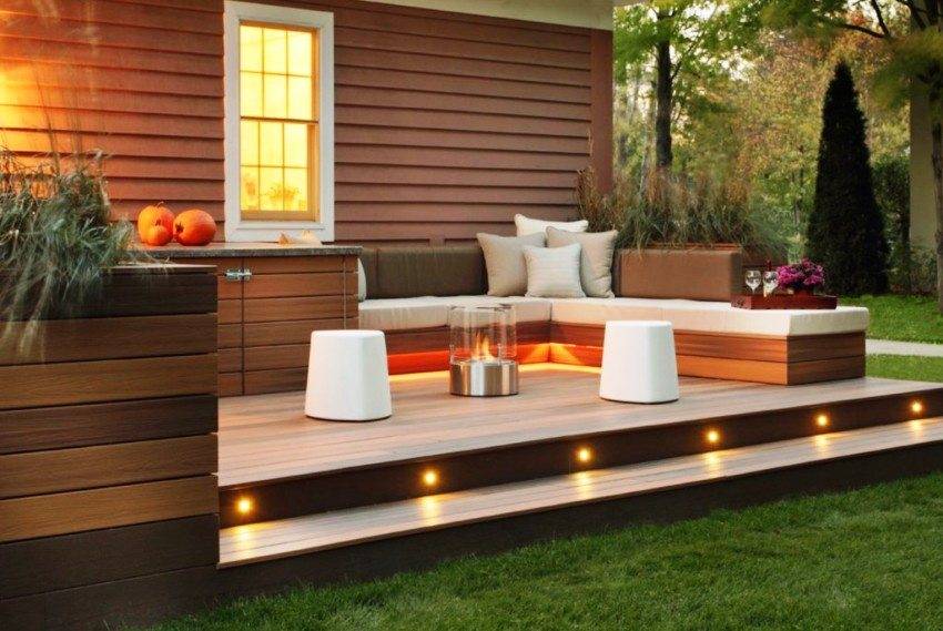 Площадка может занимать часть дома, располагаться по одной или нескольких его сторонах и даже выходить за его периметр.