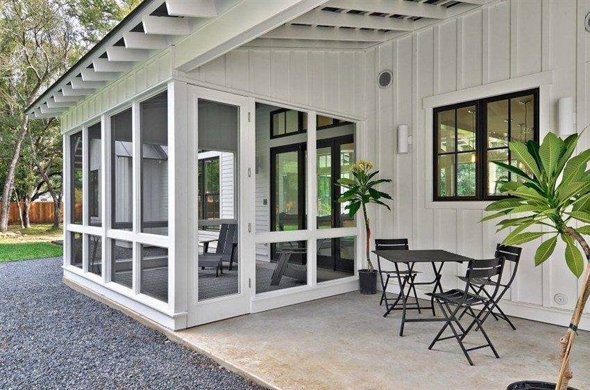 Такой вариант еще и более бюджетный, он может быть реализован на любом этапе строительства или эксплуатации дома. Закрытое деревянное крыльцо дает возможность спрятать все огрехи, возникающие на этапе строительства;
