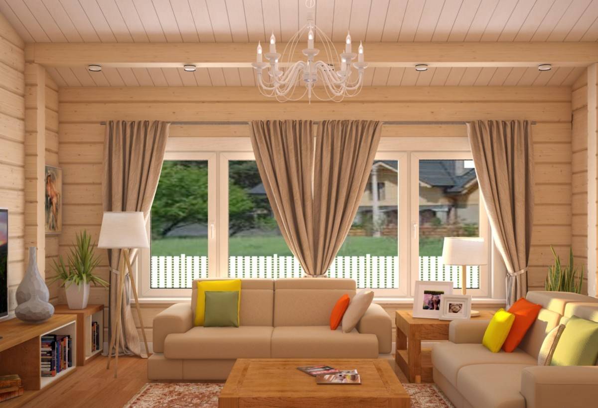 - использование цвета в интерьере бревенчатого дома;