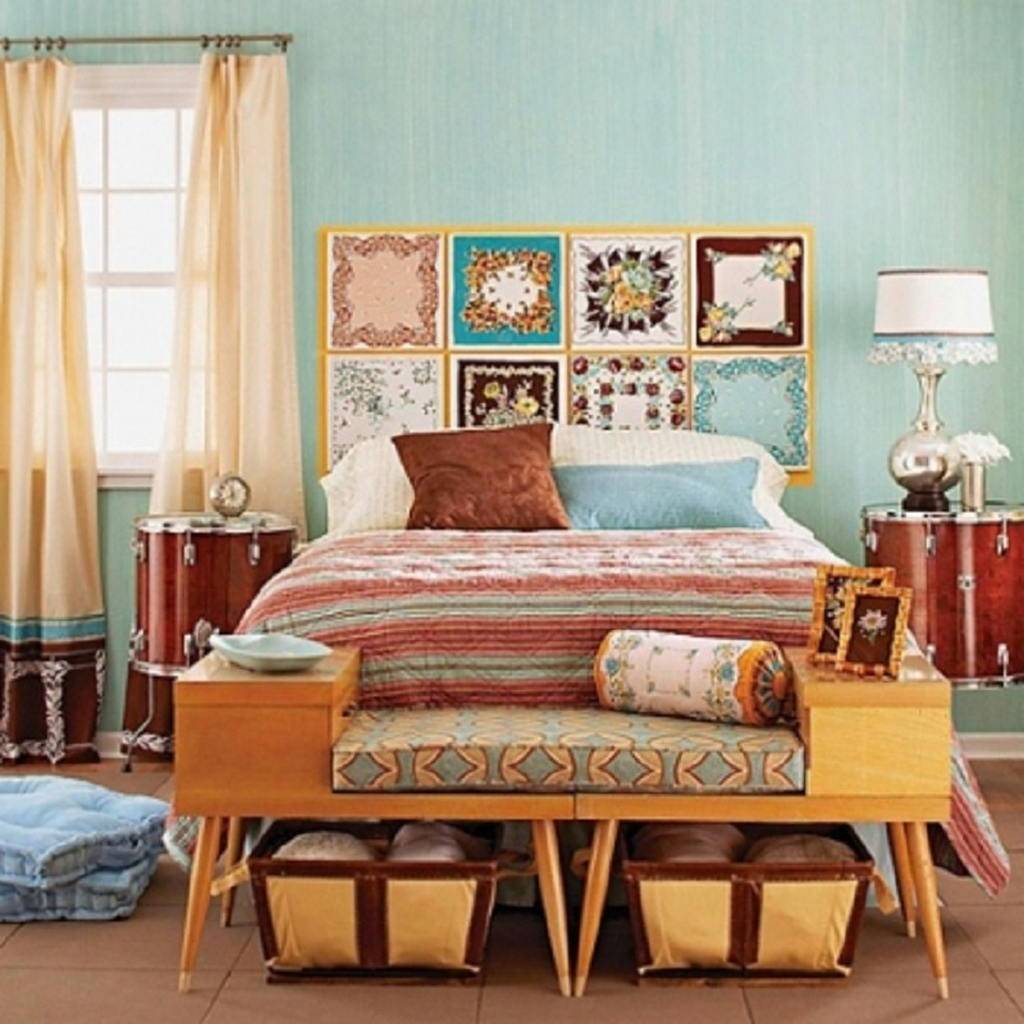 Большая двуспальная кровать с высоким изголовьем, обитым вельветом или велюром прочно заняла свои позиции в ретро-стиле. Прикроватный тумбочки или столики с обеих сторон кровати, с настольными лампами, часами-радиоприемником, цветами, фотографиями в рамках, комод и зеркало над ним составляют стандартный набор мебели спальни 60-хх.