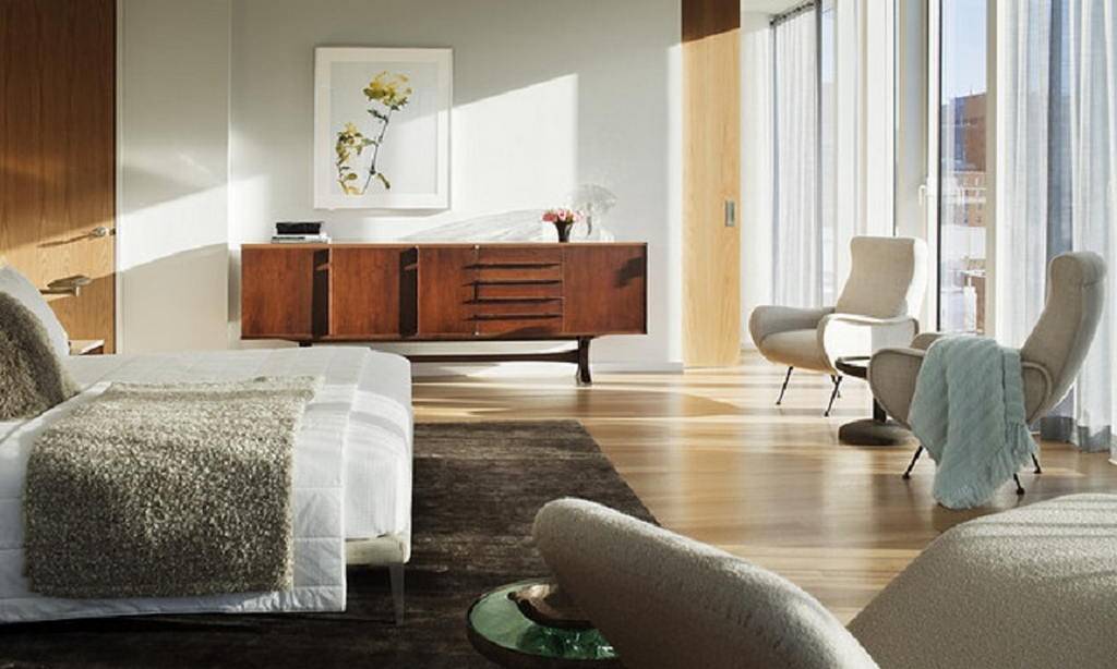 Собирательный образ, вобравший черты разных стран. Такой интерьер наполнен светом, поскольку здесь большие окна. Для мебели и отделки используется натуральное дерево, а сама комната окрашена в светлые оттенки.