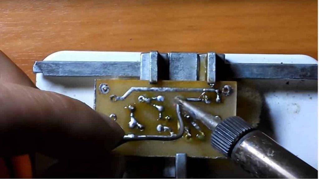- Следующий этап – лужение платы и промывка её спиртом (ацетон использовать нежелательно).