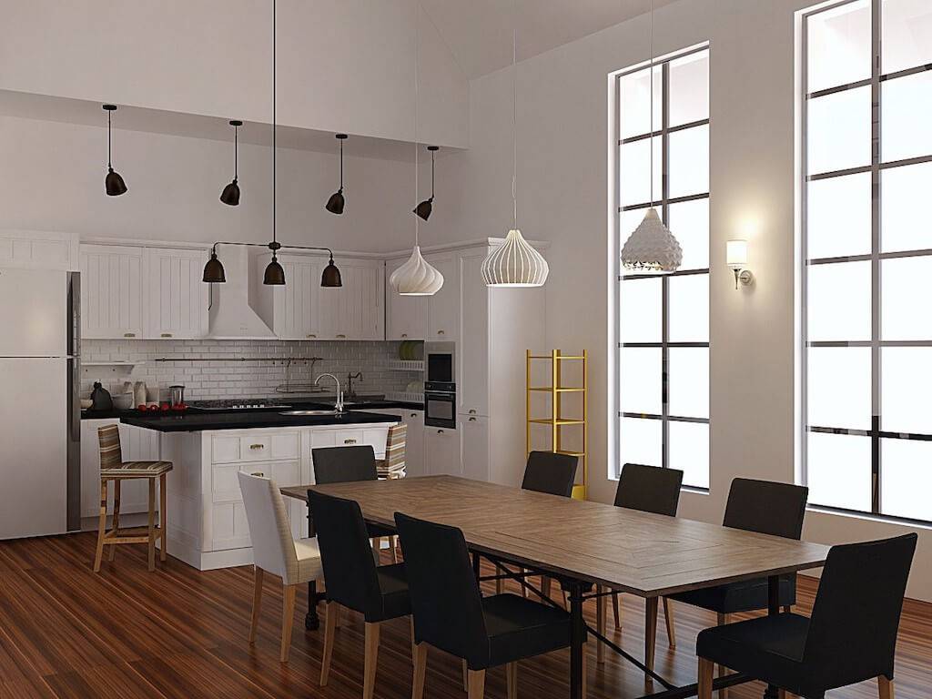 Здесь важно продумать грамотное освещение как обеденной зоны, так и места приготовления пищи, и подобрать всю необходимую посуду (сковородки, кастрюли, тарелки). При грамотном подходе ваша кухня станет уютной, стильной, функциональной и практичной, независимо от того, в каком стиле она выдержана