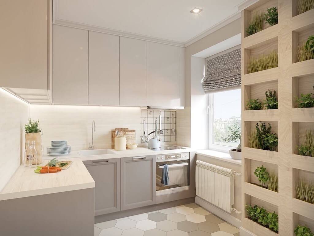 Кроме того, всегда можно использовать освещение. К нему именно на угловой кухне надо подойти со всей ответственностью, поскольку угол — самая часто используемая площадь на кухне, но при этом и самая темная.