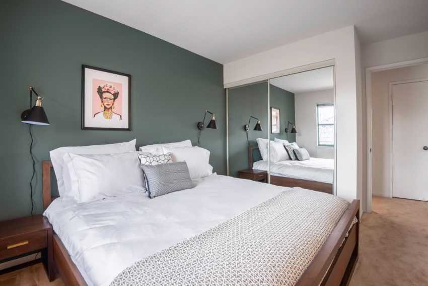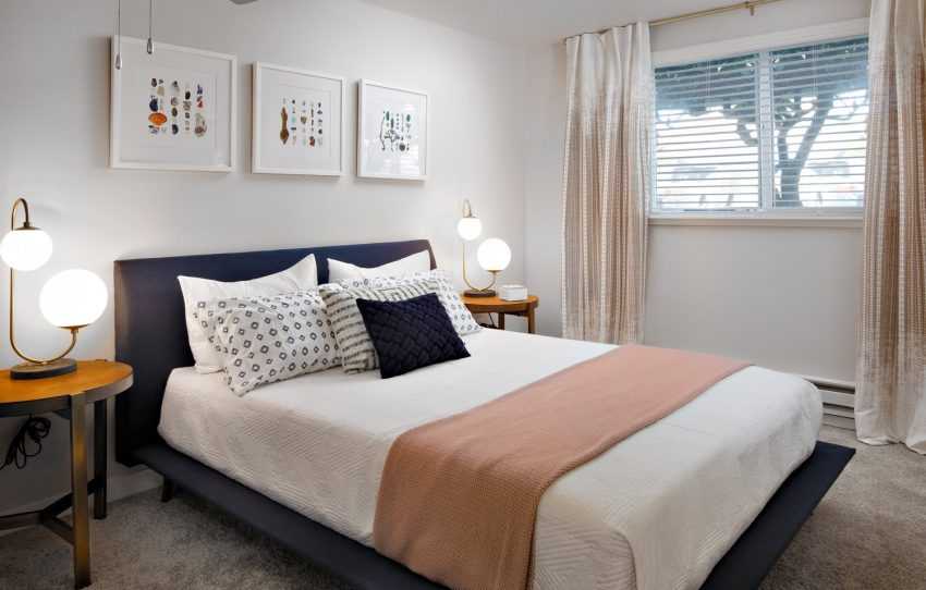 единственным громоздким предметом мебели, допустимым в маленькой спальне является кровать