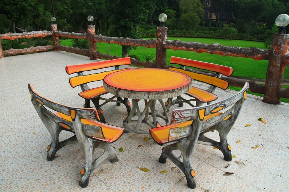 Гармонично впишется в общий дизайн дачного участка — обеденный стол. В саду он отлично себя проявит как в коричневом цвете, так и в более ярких тонах. Помимо большого стола в комплекте должны быть удобные стулья, расположившись в которых вы будите чувствовать себя достаточно комфортно.