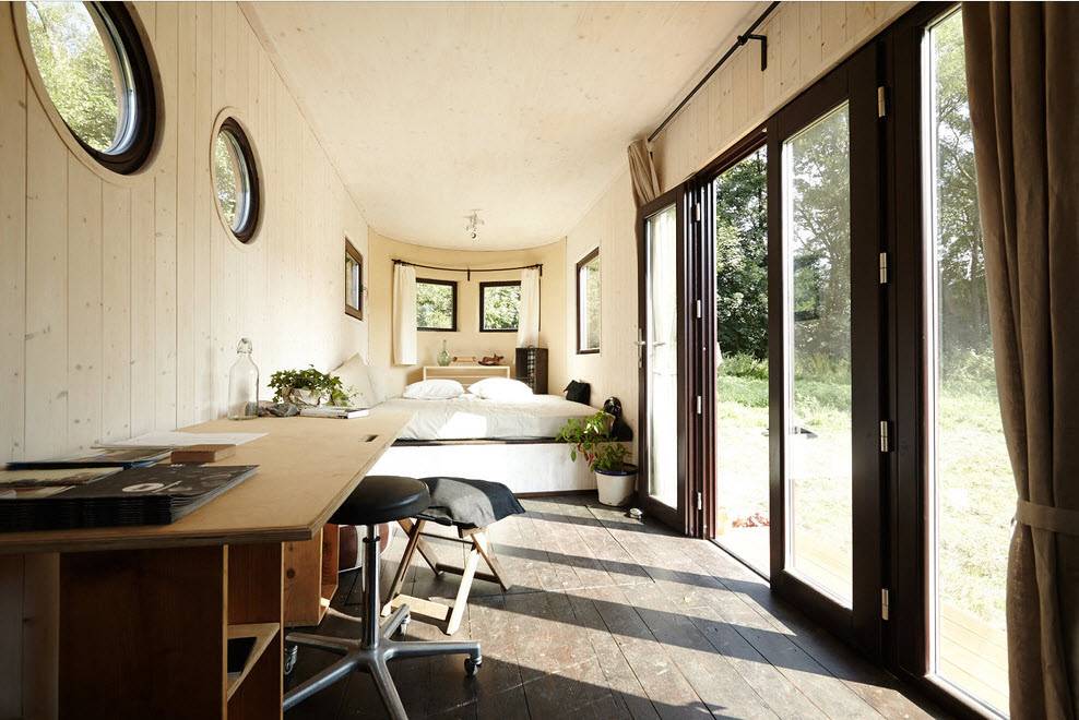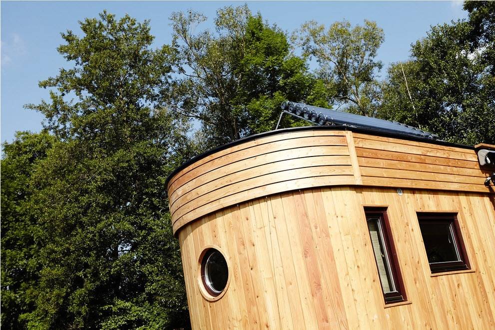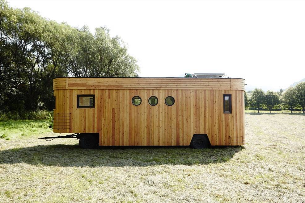 Идея Tiny House Movement пришлась по душе жителям многих стран. Этот дом в виде фургона на колесах находится в Вене. На его территории в 25 кв.м есть все необходимое для жизни – кухня, ванная, душ, кровать, жилая зона. За автономность берут на себя ответственность солнечные батареи, биотуалет, система очистки использованной и дождевой воды (благодаря фильтрам на крыше из болотных растений) и дровяная печь.