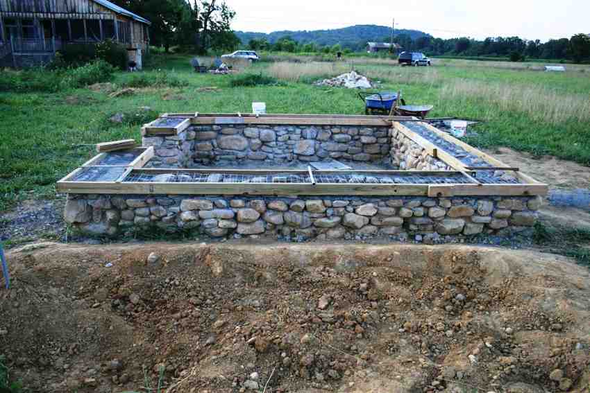 Возведение фундамента. Иногда, если почва достаточно твердая, а строение не будет иметь большой массы (например, дачный или хозяйственный домик), можно исключить постройку фундамента. В остальном необходимо разобраться с подходящим материалом. Это должен быть крепкий бетон, среднего размера щебень, речной песок. В некоторых случаях допускается организация бутокладки, но для нее необходимо дополнительное укрепление в виде армирования.
