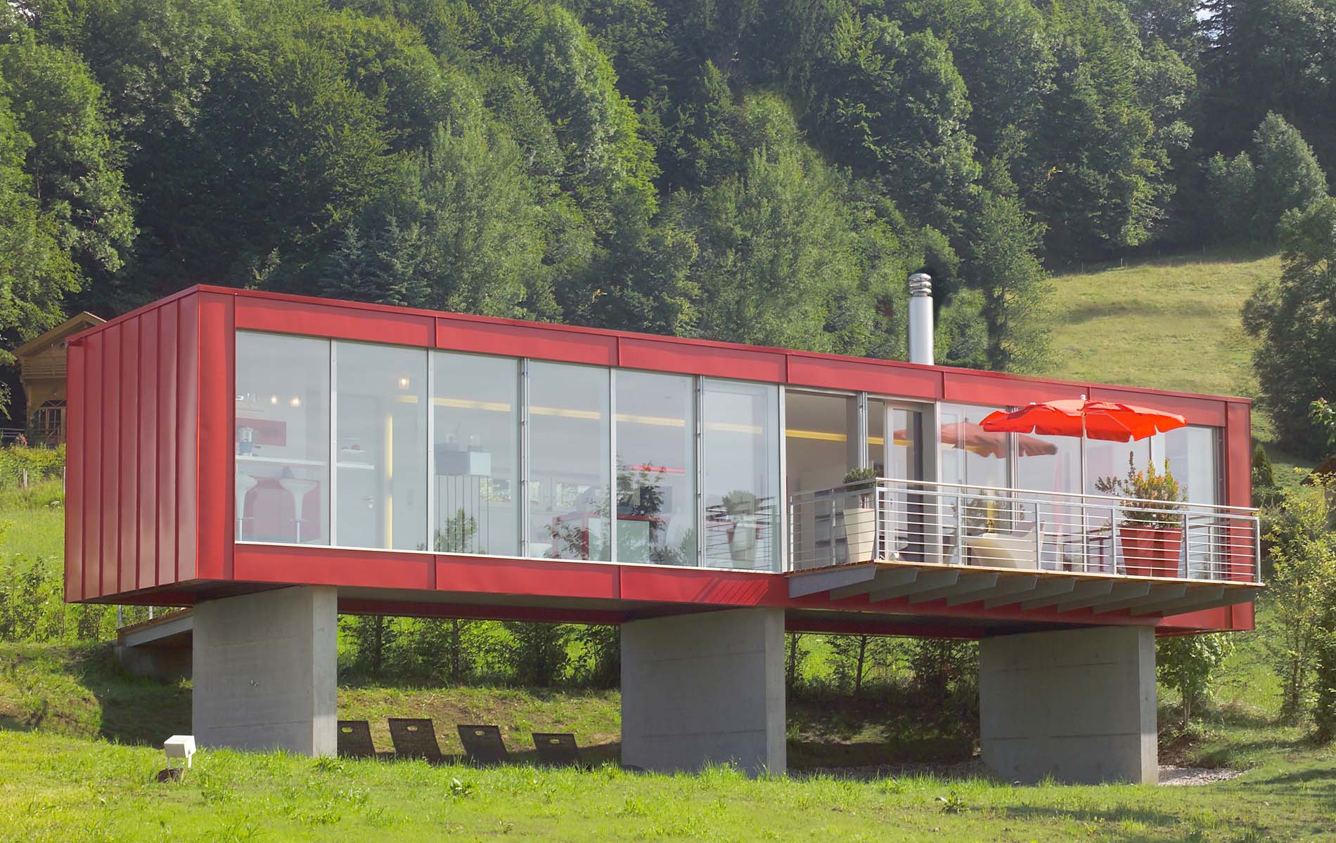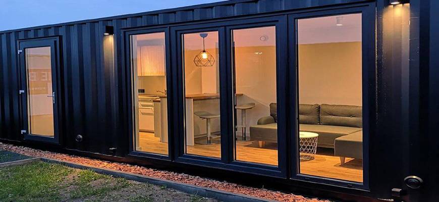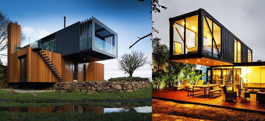 - непосредственно от самого проектного решения, а в случае применения конструкции из нескольких контейнеров – от их расположения, сочетания и прочих архитектурных особенностей;