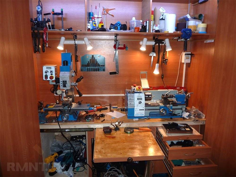 Давайте сразу определимся, что говорить будем именно о мастерской, которую можно обустроить в гараже, отдельно стоящем сарае, летней кухне, на достаточно просторной лоджии или балконе. В квартире обычно не бывает много инструментов, а имеющиеся отвёртки, молоток и плоскогубцы можно сложить в специально выделенный ящик или сумку, которые смогут занять место на антресолях или в прихожей.