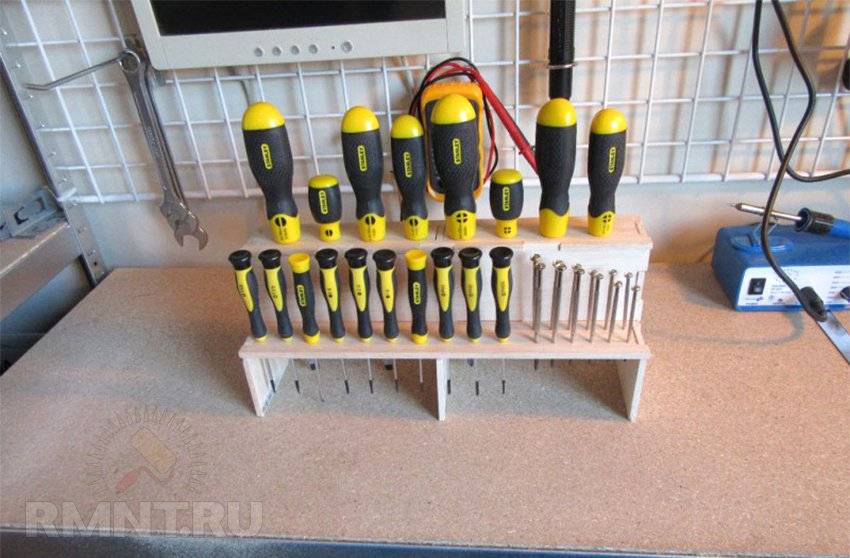 5. Для отвёрток удобно выделить отдельное хранилище, например, обычную школьную подставку для карандашей и ручек.