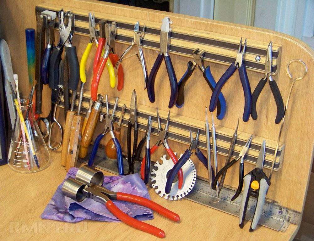 2. Магнит. У настоящих мастеров обычно на рабочем столе стоит большой магнит, к которому удачно цепляются металлические мелкие инструменты . Сейчас есть и специальные магнитные поверхности, держатели, на которых можно удобно и просто хранить множество инструментов и деталей.