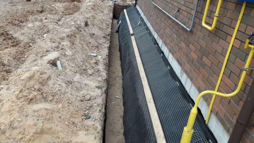 Он представляет собой систему небольших траншей вокруг строения, которые направлены в сторону водоприёмника.