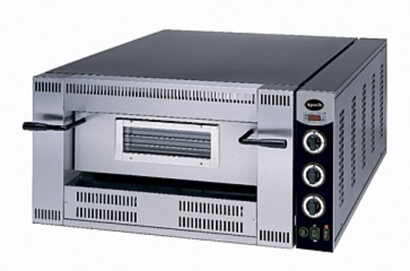 Особенностью данного вида оборудование является каменный поддон, аккумулирующий тепло и поддерживающий постоянную высокую температуру (до +500°С) внутри камеры. На этом поде непосредственно и происходит процесс приготовления пиццы, который занимает не более 7 минут.