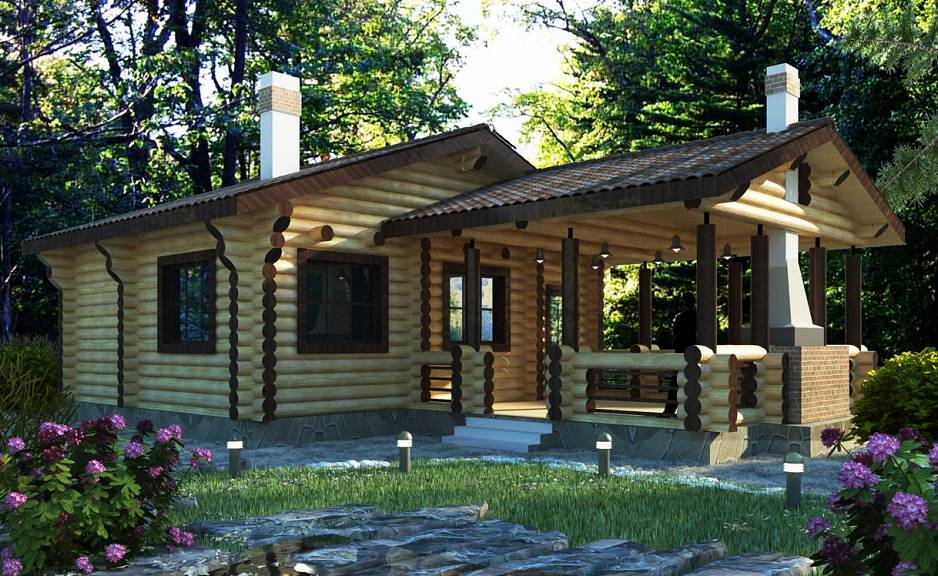 Баня из оцилиндрованного дерева с пристроенной беседкой для барбекюИсточник proektanti.ru