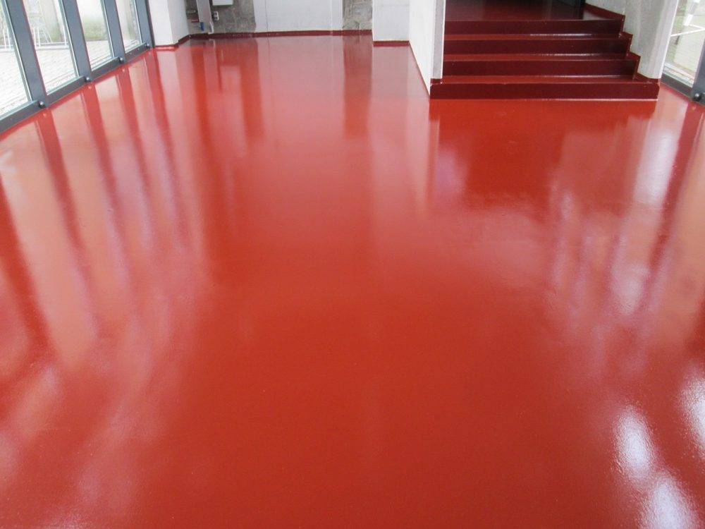 Требования к полимерной краске для пола те же, что и для наружного применения. Покрытие также должно защищать бетон от разрушения и влаги.