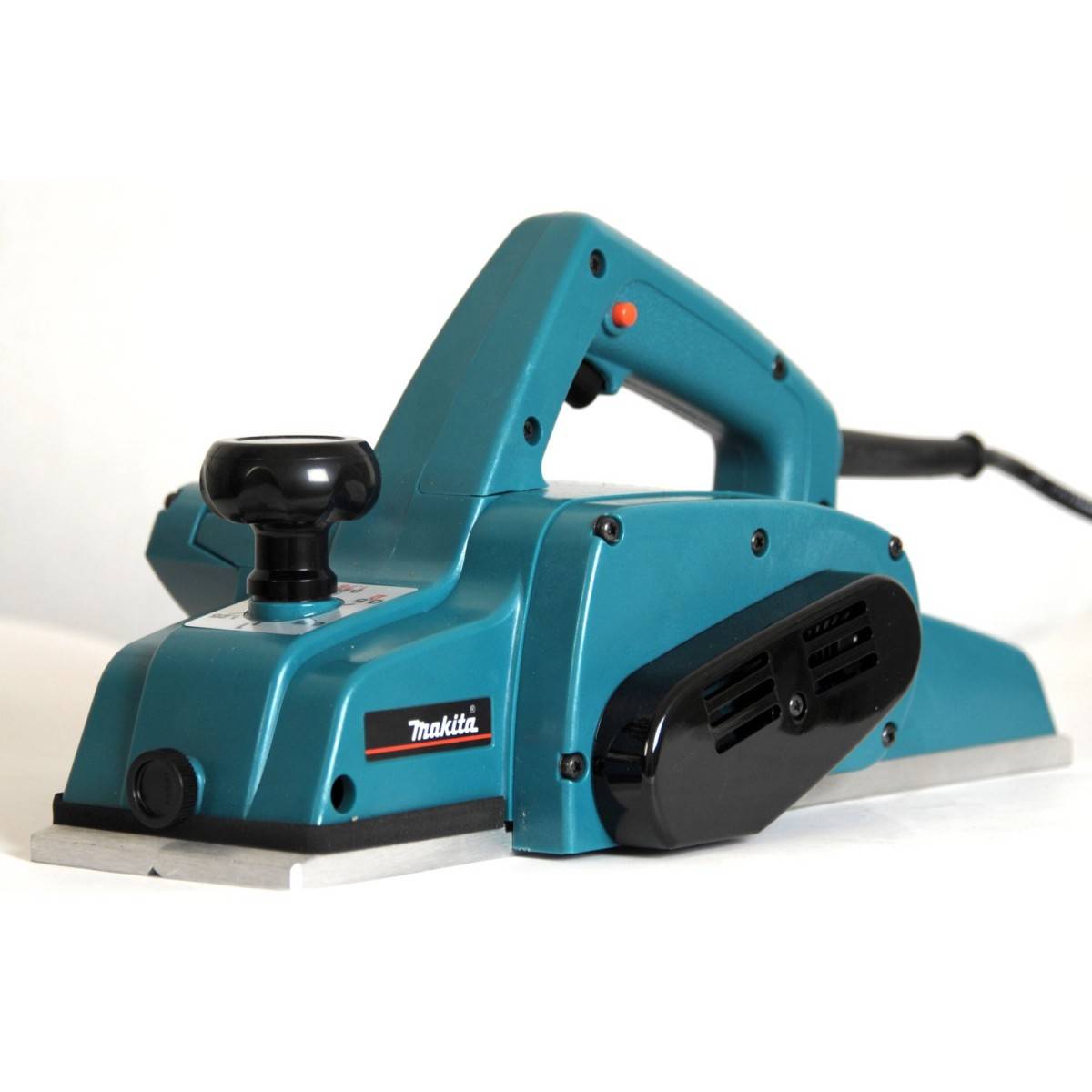 Высокомощный сетевой электрорубанок от всемирно известного производителя. Мощность инструмента – 1050 Вт, количество оборотов барабана с ножами за минуту – 13500. Максимальная глубина для строгания – 4мм, ширина – 82 мм. Есть возможность выборки четверти на глубину до 25 мм. Опилки могут выбрасываться в одну из двух сторон. На подошве расположено 3 желоба для снятия фасок. В комплекте поставляется параллельный упор, мешок для опилок, переходник для подключения пылесоса, кейс для переноски, упор.