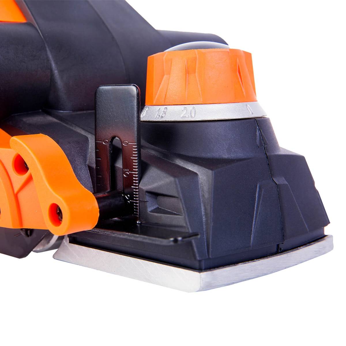 Выравнивание поверхностей с помощью этого инструмента можно ускорить без ухудшения качества обработки. Точность настройки позволяет установить оптимальную глубину прохода. Электроника обеспечивает ограничение силы тока и плавное включение, защиту от перегрева. Этот удобный рубанок по сумме потребительских параметров занимает ТОПовую позицию в группе моделей с автономным электропитанием.