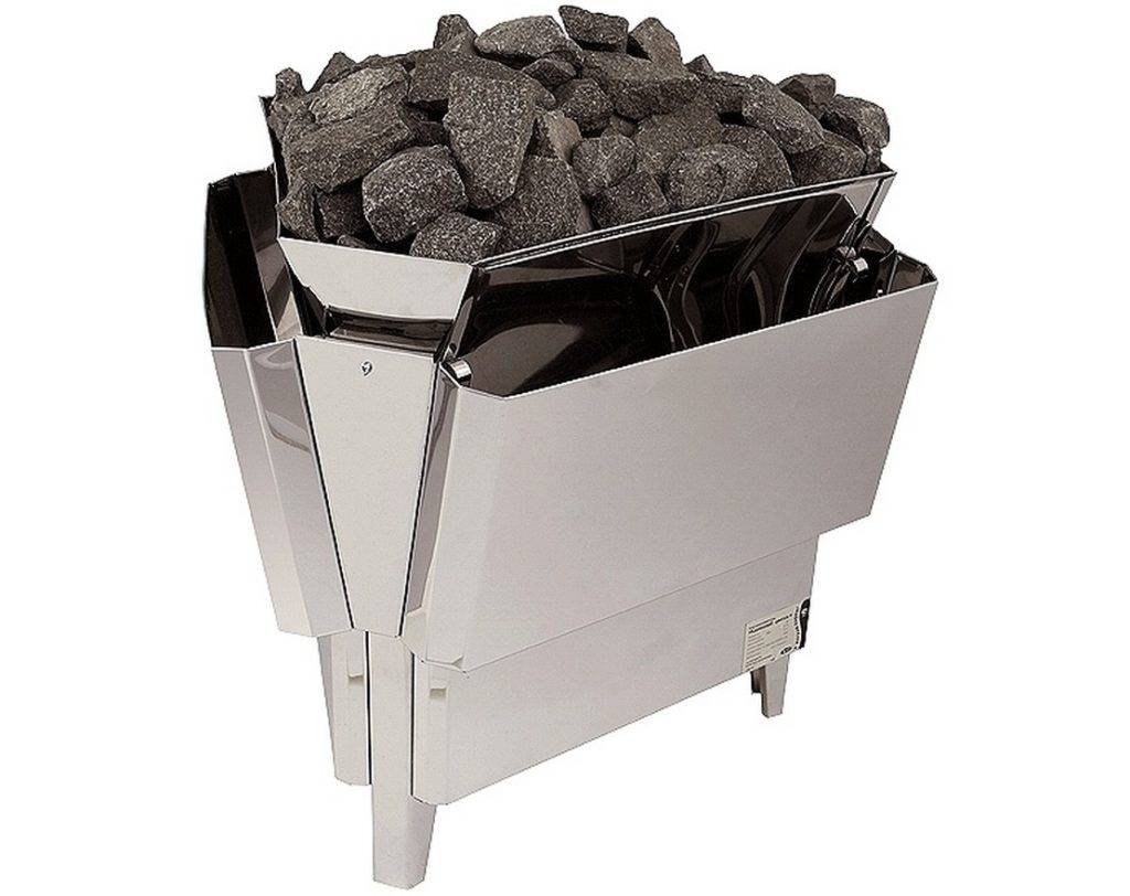 Финское оборудование востребовано среди владельцев домашних парилок, площадь которых не превышает 9 кв. метров. Прямоугольное изделие вытянутой формы изготовлено из высокопрочной нержавеющей стали. Для снижения вероятности перегрева в конструкции предусмотрены нагревательные элементы с меньшим диаметром.