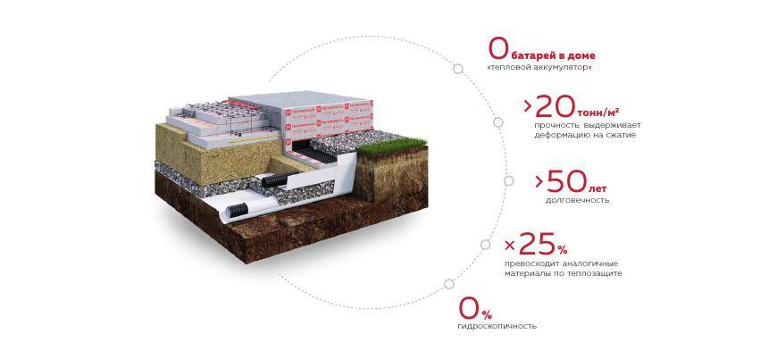 Использование слоя ЭППС толщиной в 20 см позволяет добиться параметров энергоэффективности, соответствующих международным требованиям.