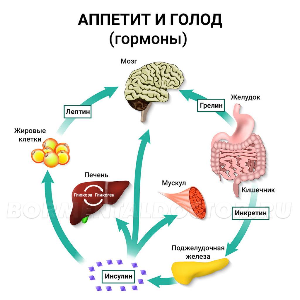 Он, прежде всего, связан с гормоном, называемым, инсулином, а именно с его быстрым ростом в состоянии голода. Ускоренная переработка полученных из пищи сахаров в жир была бы невозможна без быстрого увеличения уровня этого гормона, который, в свою очередь, за счет снижения концентрации глюкозы в крови стимулирует аппетит.