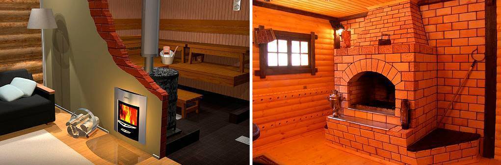 - с выносной топкой камина (для создания эффекта камина в комнате отдыха).