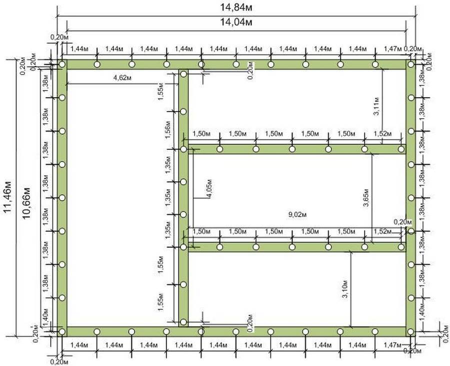 Последний этап расчета фундамента – определение необходимого количества столбов, а также шага между ними.