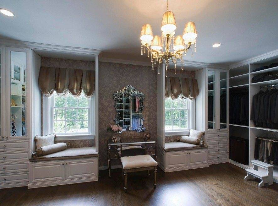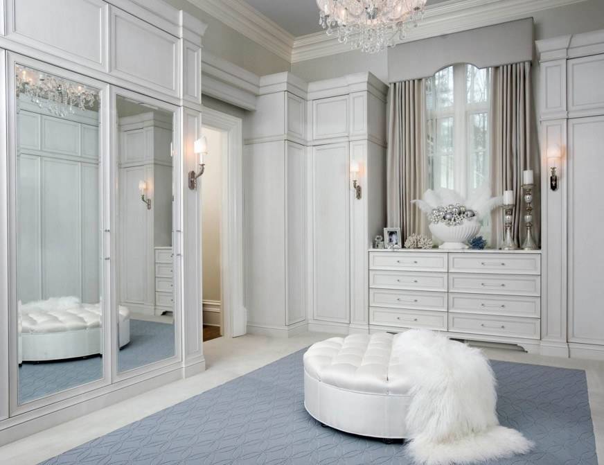 дизайн гардеробной комнаты с зеркалом