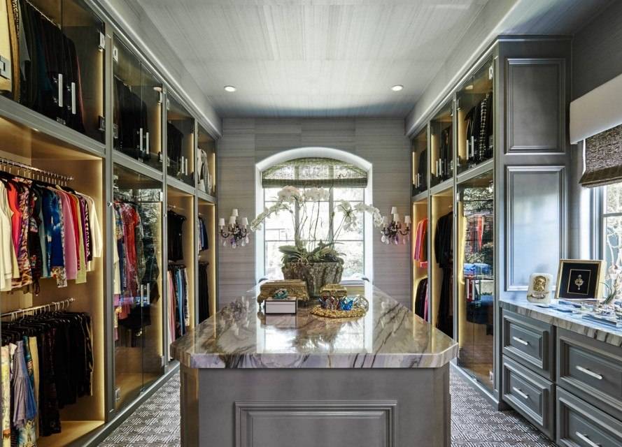 гардеробная комната в классическом стиле с островом