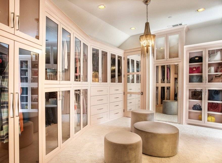 На заметку! Гардеробная закрытого типа может использоваться не только для размещения вещей, но и в качестве примерочной; для этого нужно лишь повесить зеркало или поставить трюмо.