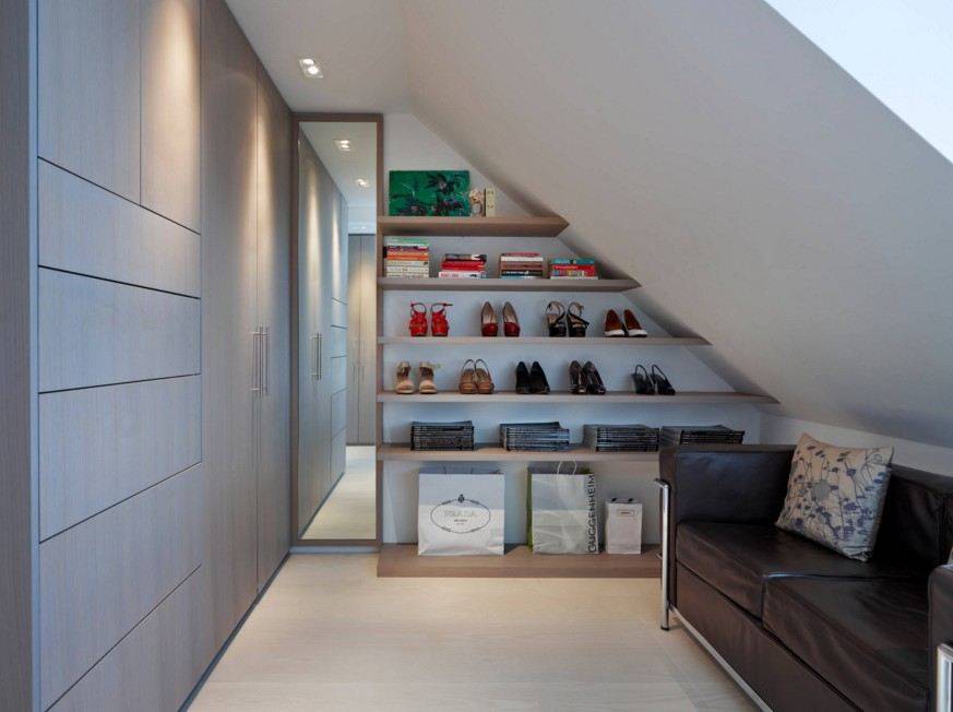 гардеробная может быть обустроена на чердаке или мансарде при наличии хорошего отопления и вентиляции