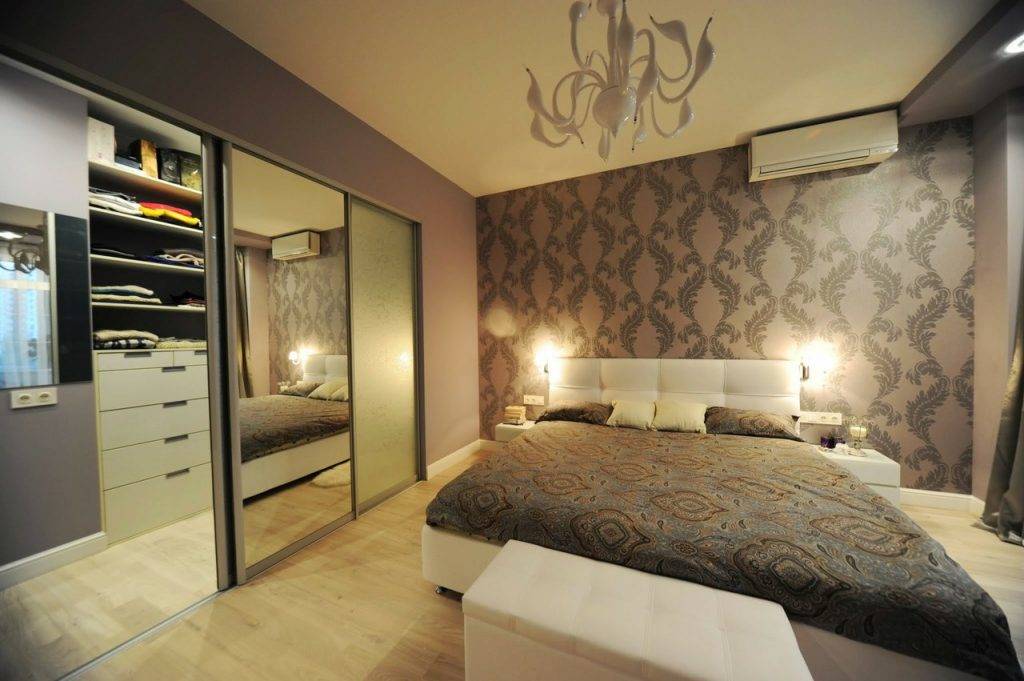 дизайн гардеробной комнаты с зеркалом