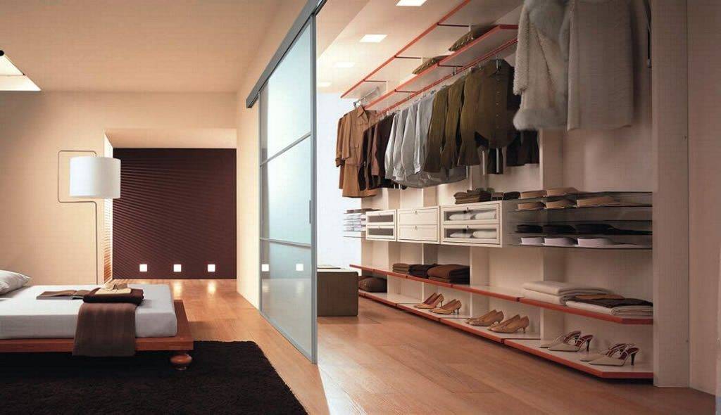 Визуально удобным и привлекательным вариантом размещения гардеробной комнаты является спальня. Разделить виды сооружения конструкций можно на несколько пунктов: