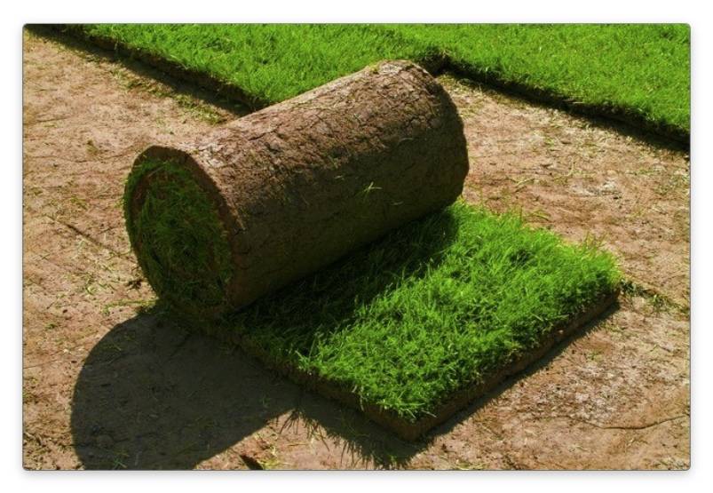 - Рулонный газон можно сделать за кратчайший срок. В этом случае речь идёт о прочной сетке, к которой прикреплён пятисантиметровый слой дёрна. Её продают смотанной в рулон. Для использования достаточно подготовить поверхность, размотать и полить.