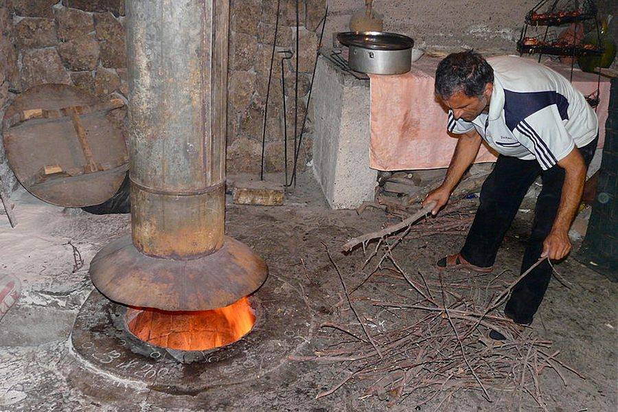 Тандыр в Армении называется «тонир» и его используют также и для обогрева домов. Армянские тандыры делали из шамотного кирпича, потому что местная глина не такая податливая и прочная. По сути, это кирпичный цилиндр с глиняными швами и обмазанной внутренней поверхностью.