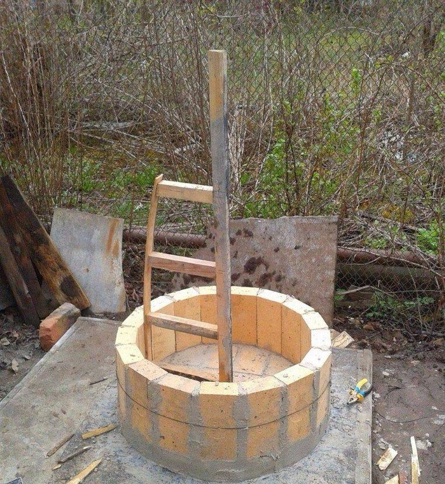 - наружная кладка квадратной, кольцевой или прямоугольной формы не нужна, эти стенки заменяет сам грунт.