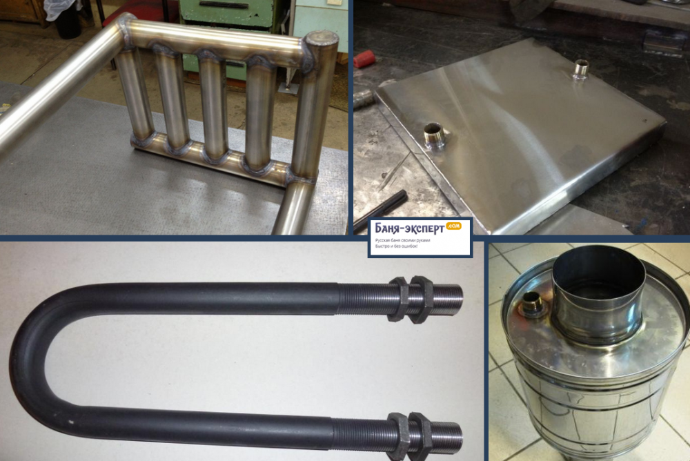 В качестве материала наилучшим образом подойдет жаропрочная легированная сталь толщиной 4-6 мм. Для парной, имеющей объем 20 кубических метров, оптимальными габаритами готового котла будут 450х450х600 мм.