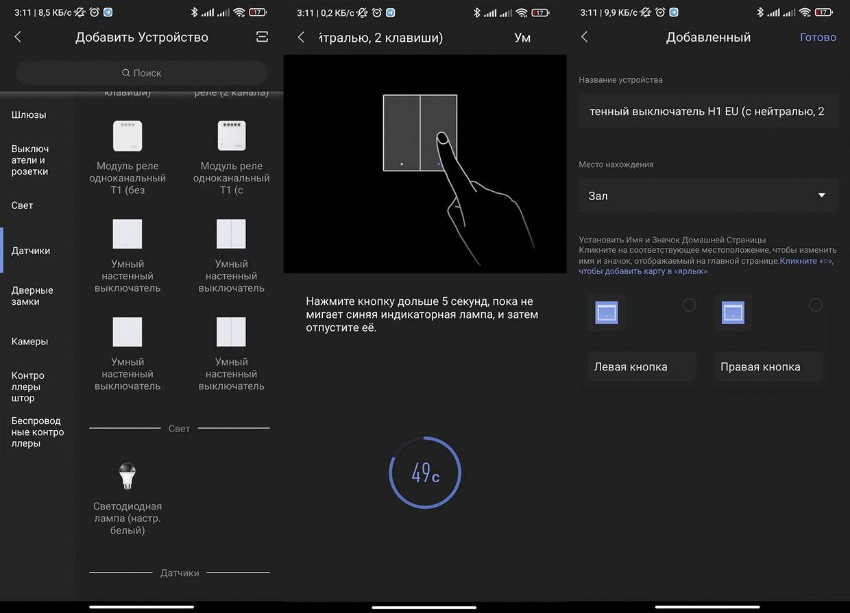 1. Устанавливаем и настраиваем ZigBee-хаб Aqara.2. Запускаем приложение Aqara Home на iOS или Android, вводим учетные данные или регистрируемся.3. Переходим во вкладку (правый верхний угол) «+» -> Выключатели и розетки.4. Выбираем Выключатель настенный для настенной модификации или Умный настенный выключатель для беспроводной.5. Подтверждаем подключение, зажав левую клавишу на 10 секунд.