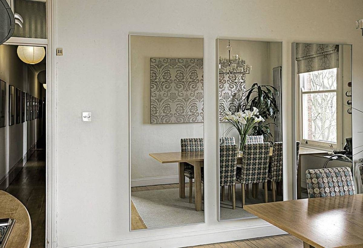 Зеркало нужно повесить таким образом, чтобы оно зрительно увеличивало площадь комнаты, но при этом нельзя вешать его так, чтобы в нем отражалась входная дверь.