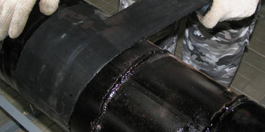 Недорогие битумно-резиновые или битумно-полимерные мастики наносятся холодным или горячим методами при прокладке керамических магистралей.