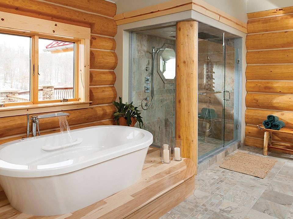 При этом ограничений относительно установки сантехники не существует. Как любой другой дом, в деревянном сооружении можно поставить душевую кабину, полноценную ванну, огромное джакузи и так далее.