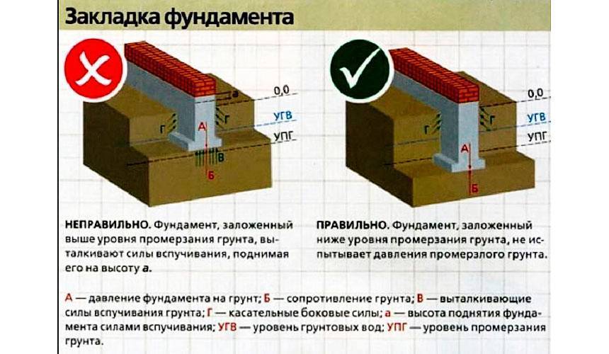Глубина заложения фундамента – определяющие факторы