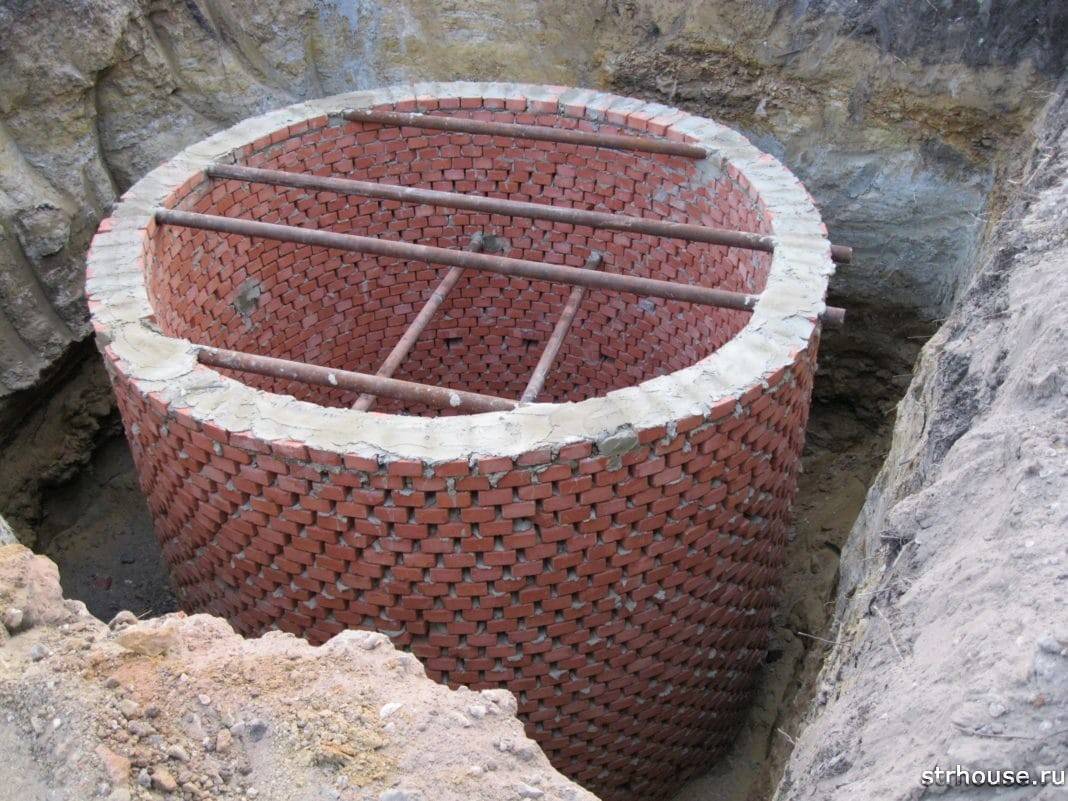 Если же вы возводите канализацию без дна, то в качестве подошвы под кирпич необходимо сделать подушку и заливку бетона в форме кольца, чтобы во внутреннюю часть могла уходить вода.