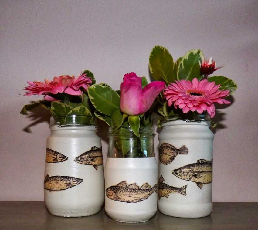 Последний этап – покрытие лаком. Его нужно делать в несколько слоев. Это надолго сохранит поделку и позволит мыть банку.